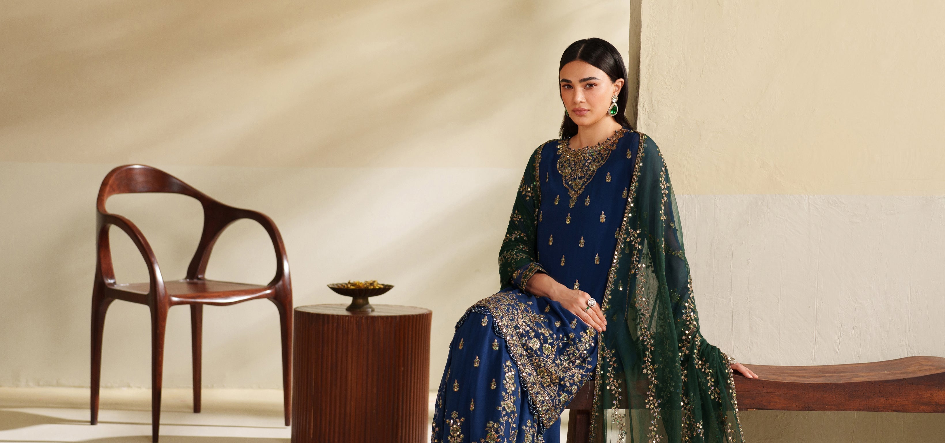 Discover timeless elegance with premium khaddar net shirts, delicately embroidered, paired with soft linen trousers and a graceful net dupatta. Available in both unstitched and ready-to-wear options.