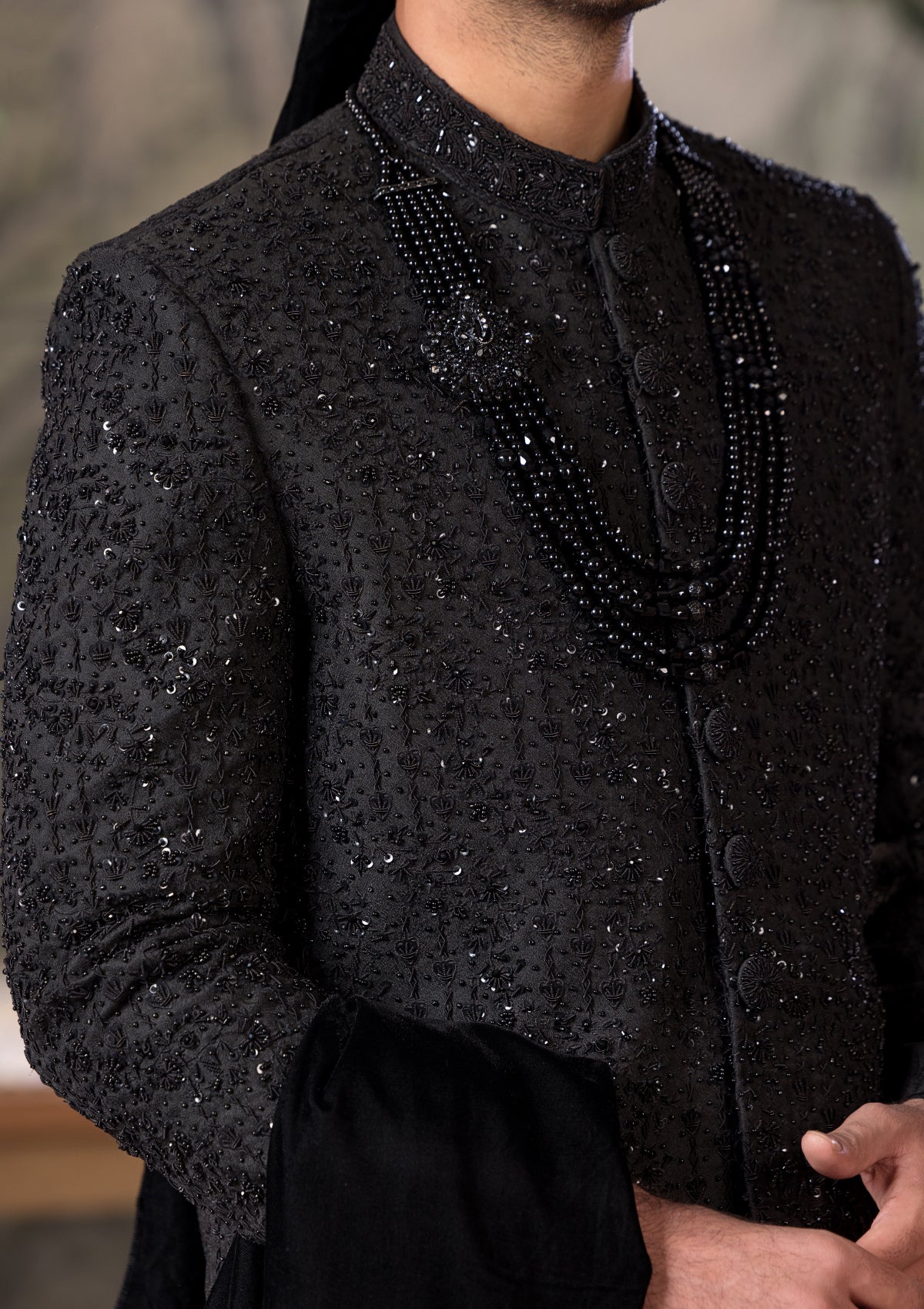 HAND EMBROIDERED SHERWANI , EMBROIDERED FABRIC ,DIFFERENT TONES OF SILK THREAD & CLASSIC EMBROIDERY TECHNIQUES