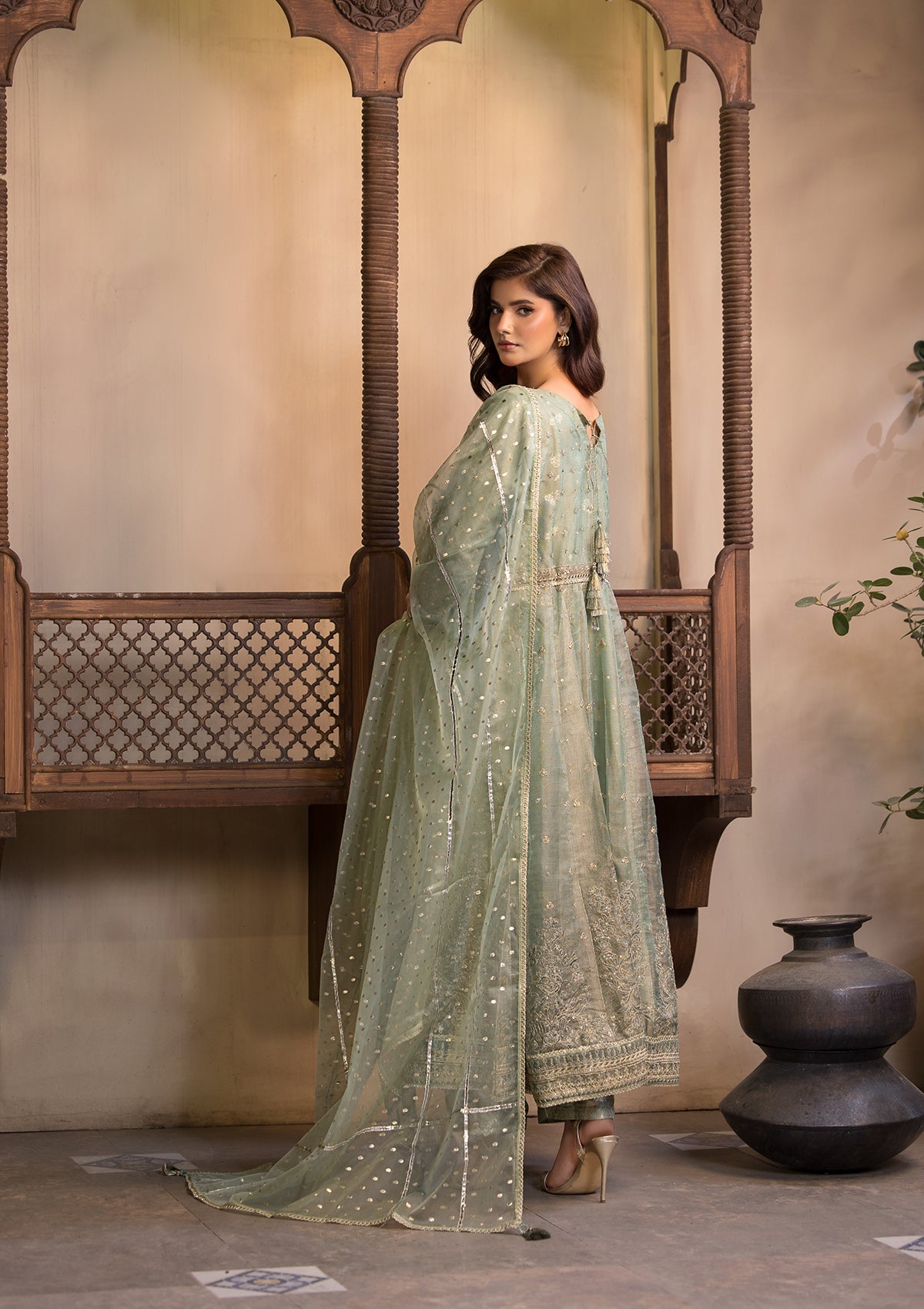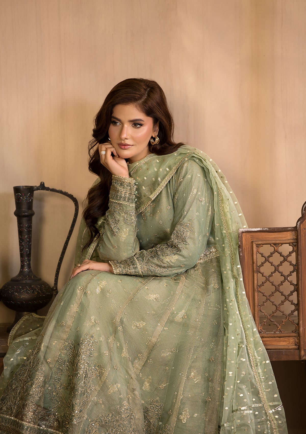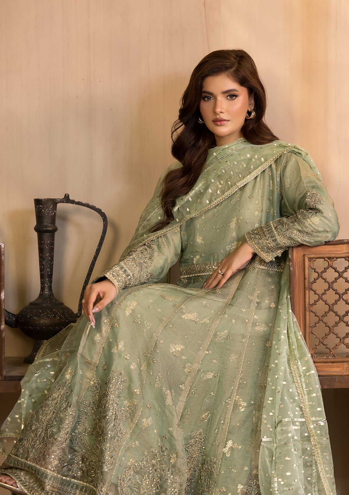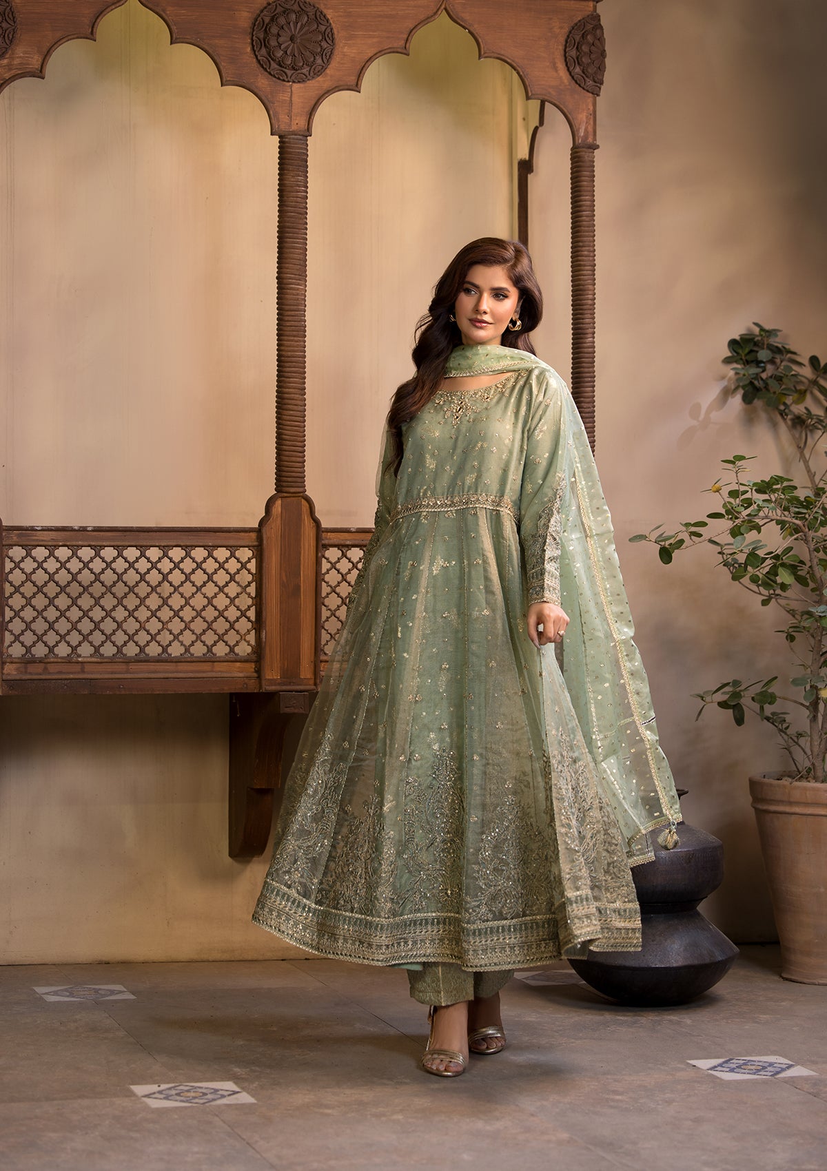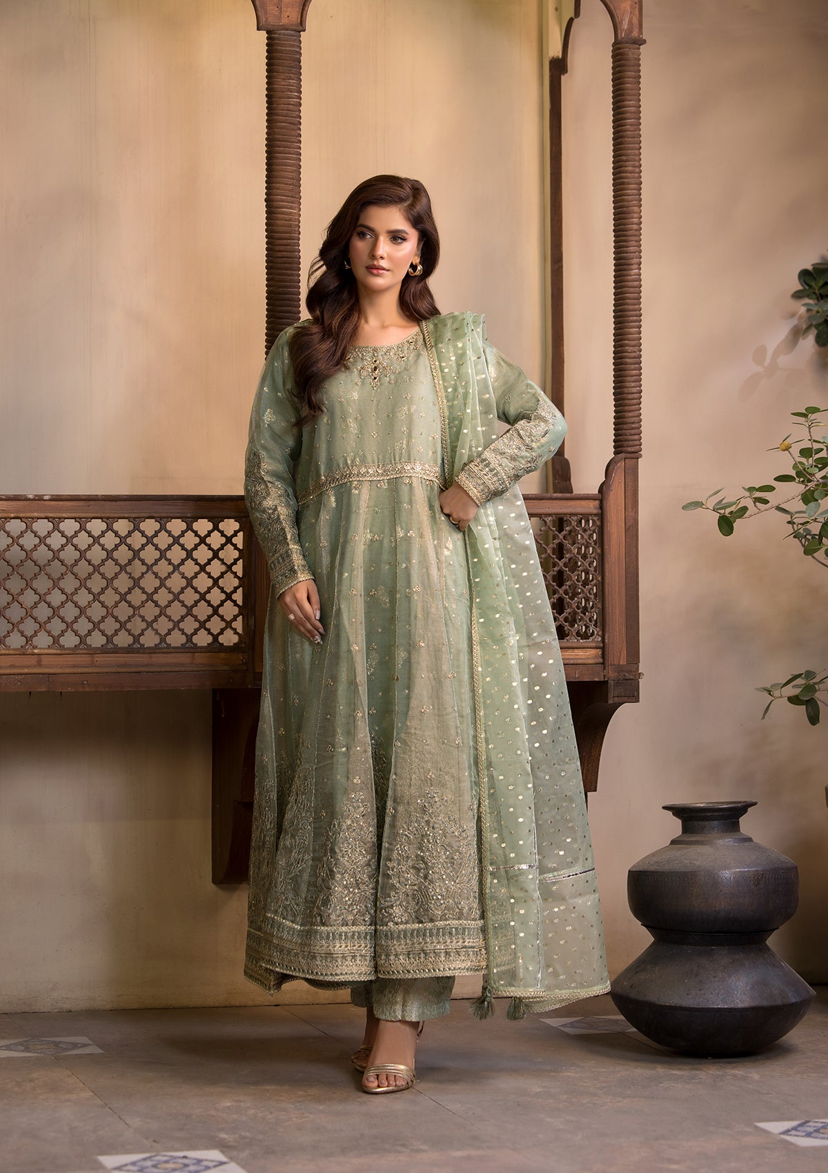 Crafted from premium Cotton Net, the shirt features delicate machine embroidery, showcasing intricate detailing and graceful patterns that elevate your festive and semi-formal wardrobe. It’s perfectly paired with a dyed trouser and an ethereal chiffon dupatta that flows effortlessly with every step.