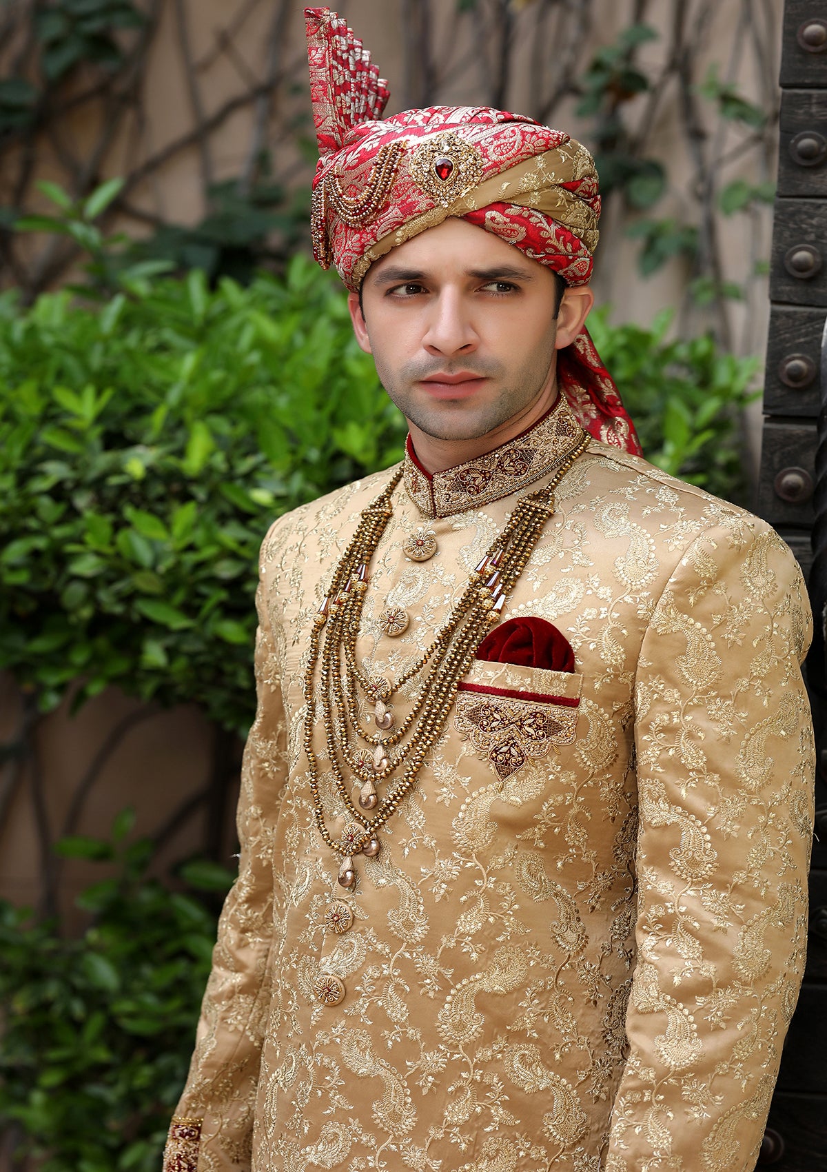 Bin Tayyab Sherwani (TD-1400) Almond Gold