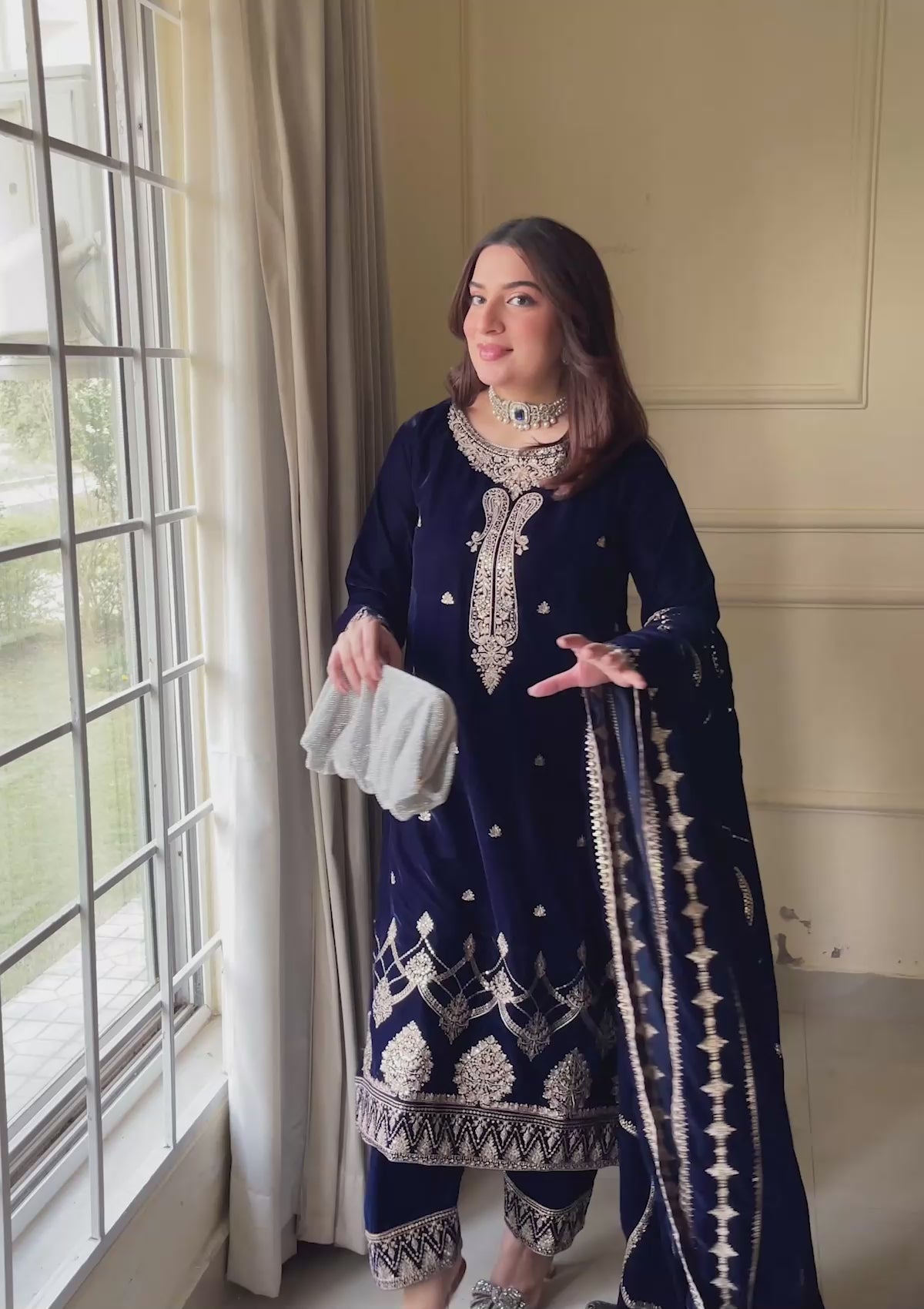 Made with ultra-soft, high-quality velvet and embellished with intricate embroidery, this collection reflects the rich craftsmanship Pakistan is known for. Whether you're attending a wedding, formal dinner, family celebration, or winter event, AURA Edit ensures you stand out with grace and glamour.